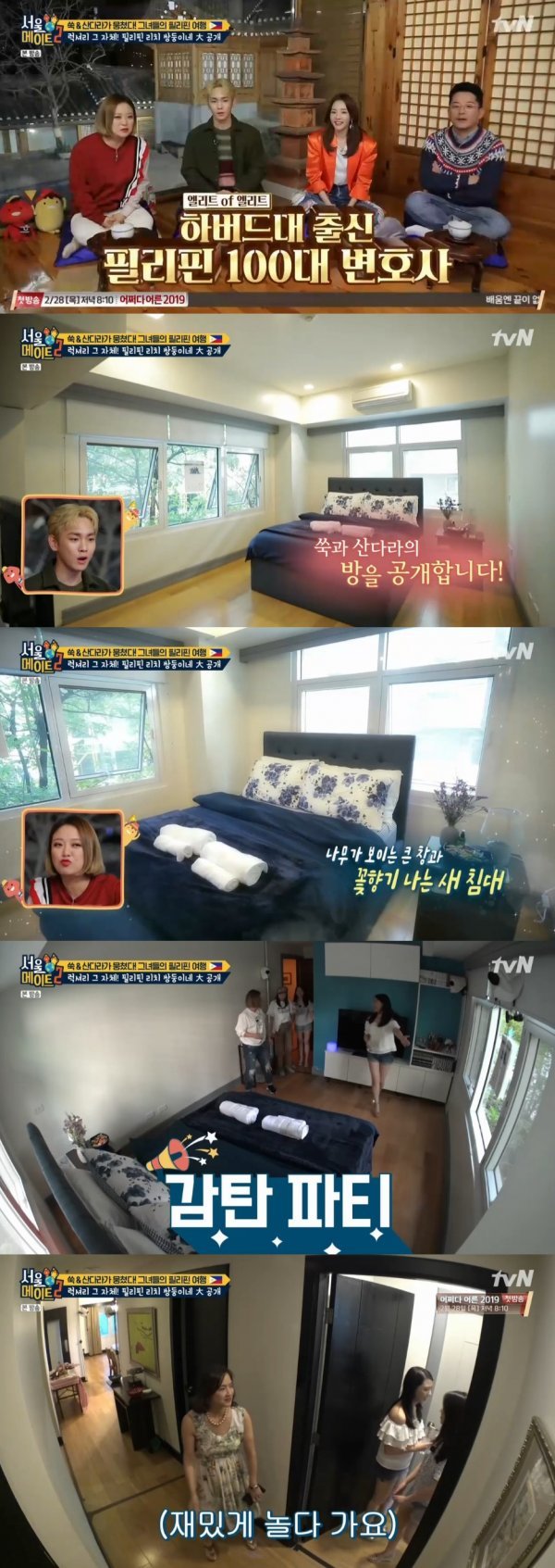 18일 오후 방송된 tvN 예능프로그램 ‘서울메이트2’에서는 필리핀 쌍둥이 집으로 향한 김숙과 산다라박의 모습이 그려졌다.