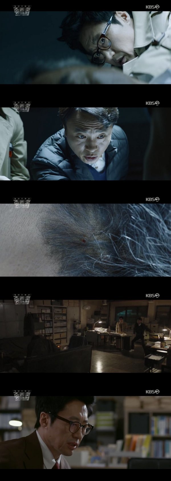 이날 조들호는 늦은 밤 시신을 보러 검사실로 향했다. 그는 이전 사건과 수법이 겹치는 지 알아보기 위해 시신의 머리를 살폈고, 지난번과 마찬가지로 머리 뒤에서 작은 상처를 발견했다.