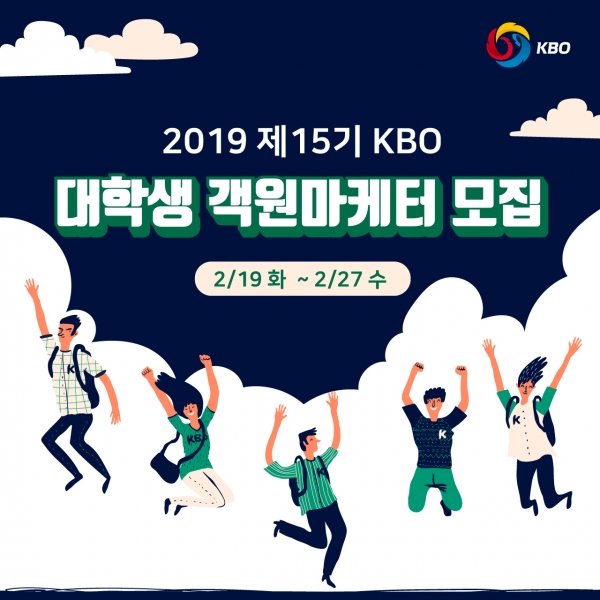 KBO(총재 정운찬)가 19일(화)부터 27일(수)까지 2019 제15기 KBO 대학생 객원마케터를 모집한다.