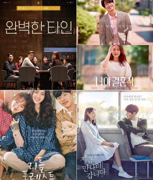 영화 ‘완벽한 타인’ - ‘너의 결혼식’ - ‘지금 만나러 갑니다’ - ‘리틀 포레스트’(왼쪽 상단부터 시계 방향으로). 사진제공|롯데엔터테인먼트·메가박스중앙(주)플러스엠