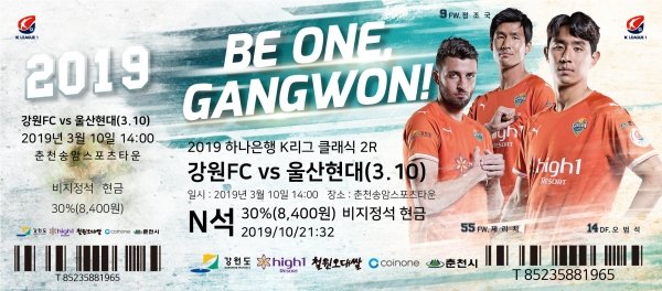 프로축구 K리그1 강원FC가 2019시즌 홈경기 입장권 구매자들을 위한 다양한 혜택을 마련했다.