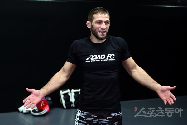샤밀 자브로프가 공개훈련을 마친 뒤 도발한 권아솔을 찾고 있다.
