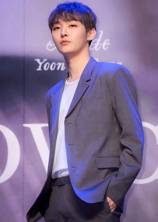 가수 윤지성이 20일 서울 용산구 한남동 블루스퀘어에서 열린 솔로 데뷔 앨범 ‘Aside(어사이드)’ 발매 기념 쇼케이스에서 포토타임을 갖고 있다.
