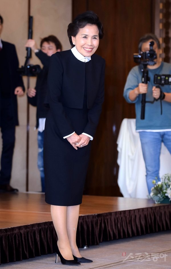 ‘엘리지의 여왕’ 이미자가 21일 서울 중구 소공동 웨스틴조선호텔에서 열린 데뷔 60주년 기념 음반 및 신곡 발표회에서 미소를 지으며 취재진에게 인사하고 있다.