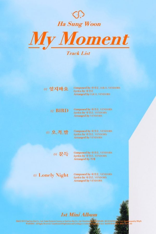 21일 오후 공개된 하성운의 첫 번째 솔로 미니앨범 \'My Moment\' 트랙리스트에는 지난 1월에 발표한 ‘잊지마요’를 시작으로 총 5곡이 포함되어 있다.