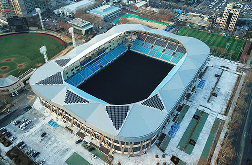 경기장 구조도 독특하다. 대부분의 스포츠 경기장은 철근과 콘크리트로 짓지만 대구는 관중석 일부를 알루미늄으로 만들었다. 약 700명 정도의 팬들이 입장할 수 있는 서포터 존(Zone)이다. 이처럼 알루미늄으로 바닥을 처리한 이유는 분명하다. 알루미늄 바닥에서 발을 구르고 각종 응원도구를 두드려 발산될 뜨거운 홈 열기를 그라운드로 전하기 위함이다.