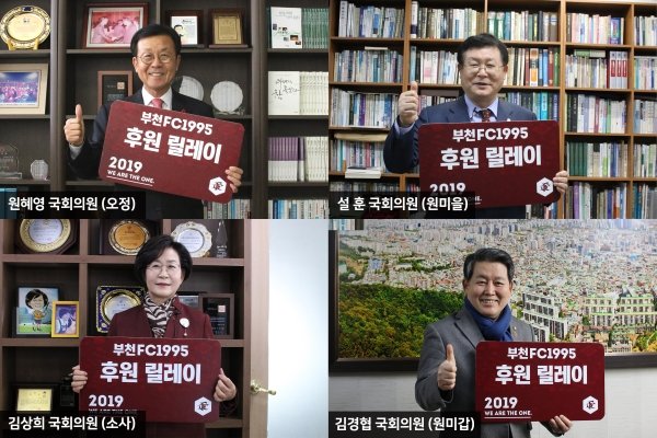프로축구 K리그2 부천FC1995의 2019시즌 연간후원 릴레이에 부천 지역의 국회의원 모두가 동참했다.