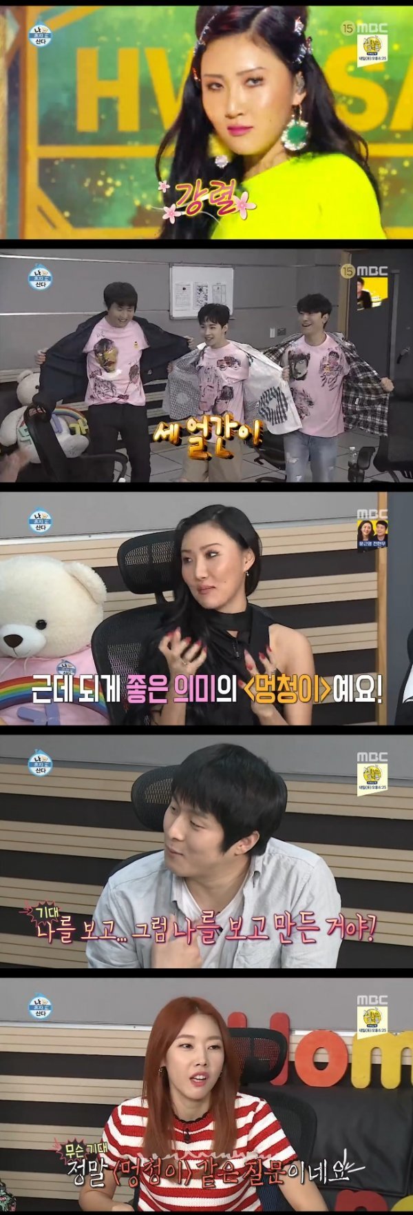 먼저 스튜디오에서는 무지개회원들이 화사의 음원 1위를 축하해줬다. 전현무는 “화사의 ‘멍청이’는 세얼간이가 영감을 줬다”라고 농담했다. 화사는 고개를 저으며 “‘멍청이‘가 되게 좋은 의미다. 순수한 사람이라는 의미다”라고 말했고 기안84는 “나를 보고 만든 거냐”라고 말해 웃음을 자아냈다.