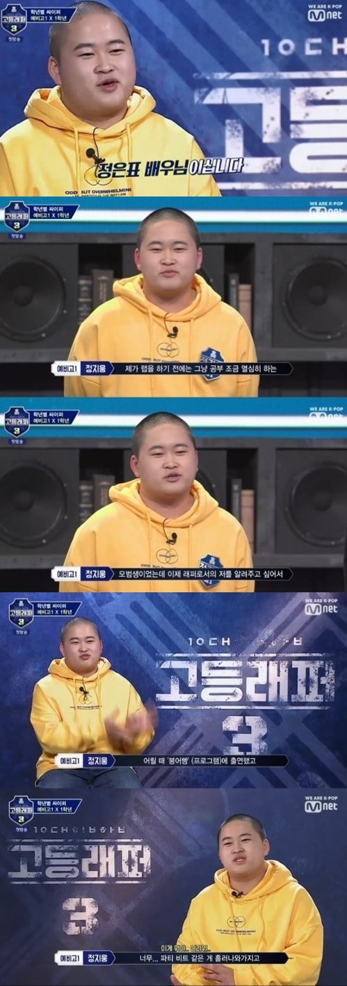 배우 정은표의 아들 정지웅이 Mnet '고등래퍼3'에 출연했다.