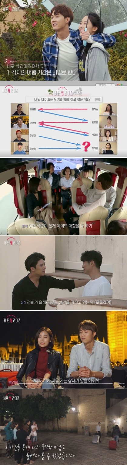 ‘비포 썸 라이즈’는 출연자 사이의 억지 러브라인을 강요하지 않는다. 스페인 5개 도시를 여행하며 만난 썸남썸녀들은 호감 가는 이가 많으면 많은대로, 없으면 없는대로 자신들의 감정에 충실할 뿐이다. 출연자 중 초반부 가장 평범해보였던 박경희는 ‘리액션의 화신’으로 분해, 김길환(27, 스킨스쿠버다이빙 강사), 강성신(35, 변호사), 유현석 등 많은 남자들의 마음을 뒤흔들어놨다. 반면 인기녀였던 김하늘(25, 영어강사)은 썸남 최주헌(30, 공중보건의)을 박경희에게 뺏긴(?) 뒤 한참을 방황했고 특별한 러브라인이 안 생겨서 안타까움을 자아냈다. 조미영(25, 쇼핑몰 운영) 역시 다섯명의 썸남과 여러 만남을 가졌음에도, 크게 감정을 드러내지 않았다. 남자 출연자들은 “조미영의 마음을 가장 알 수가 없다”라고 입을 모았다.