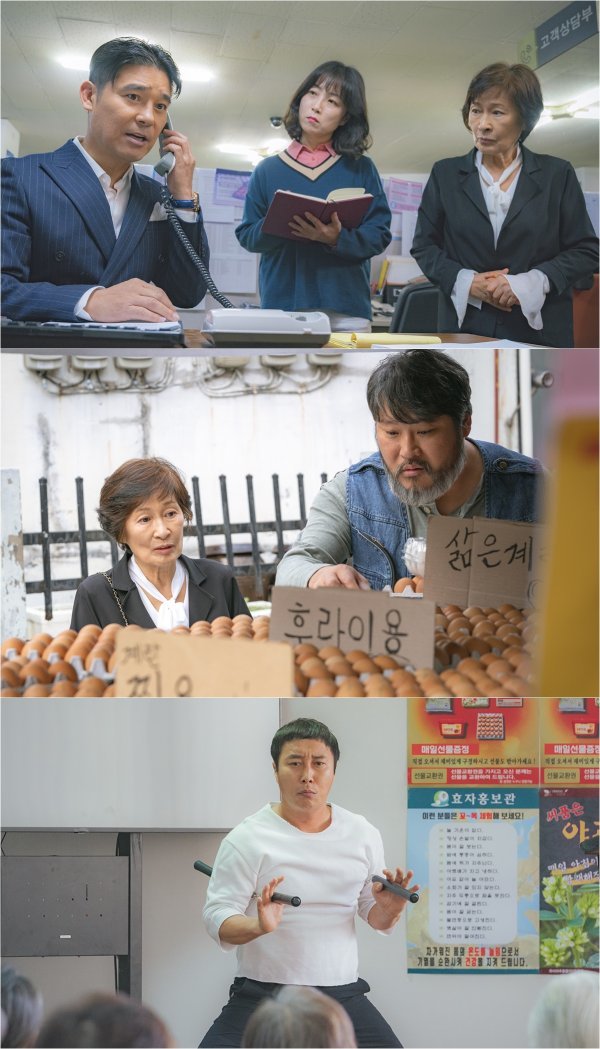 그런 가운데 공개된 사진에는 보기만 해도 범상치 않은 아우라를 뽐내는 임창정, 최무성, 김병만의 모습이 담겨있어 호기심을 자극한다. 먼저 차진 5:5 가르마로 독보적 코믹 아우라를 발산하는 임창정의 모습이 시선을 강탈한다. 멀끔한 슈트를 차려입고 진지하게 전화를 받고 있지만, 어딘가 의심스럽기 그지없는 모습에서 ‘꾼’의 기운이 느껴진다. 그런 임창정을 흥미진진하게 바라보는 혜자의 표정도 호기심을 자극한다. 함께 호흡을 맞춘 김혜자는 임창정을 "코믹 연기의 천재"라고 칭찬을 아끼지 않았다는 후문. 특유의 능청스러운 연기를 마음껏 발산하며 유쾌한 웃음을 선사할 것으로 기대를 모은다.