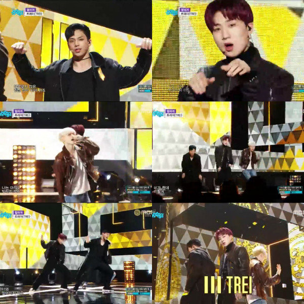 신예 3인조 보이그룹 트레이(TREI)가 23일 오후 방송된 MBC ‘쇼 음악중심’에서 신인답지 않은 퍼포먼스와 가창력으로 특급 루키다운 무대를 선보였다.