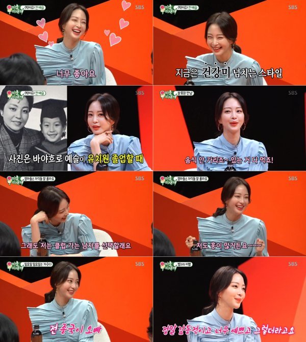 ‘모벤져스’의 관심은 한예슬의 이상형에 집중됐다. 한예슬은 김종국의 엄마를 바라보며 “예전에는 순정만화 주인공처럼 마르고 얼굴 하얀 사람이 이상형이었는데 나이를 먹으니까 건강미가 넘치는 스타일이 좋더라. 건강한 게 최고”라고 말했다.