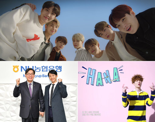 KB국민은행은 방탄소년단과의 광고모델 계약을 연장했다. 지난해 2월 방탄소년단을 광고모델로 기용한 직후 방탄소년단이 빌보드 1위에 오르면서 큰 광고 효과를 거둔 바 있다. 광고 영상을 금융 앱 리브에 공개하고 협업 상품인 KB BTS 적금, KB국민 BTS체크카드를 발급하는 등 방탄소년단 활용도를 극대화하고 있다.