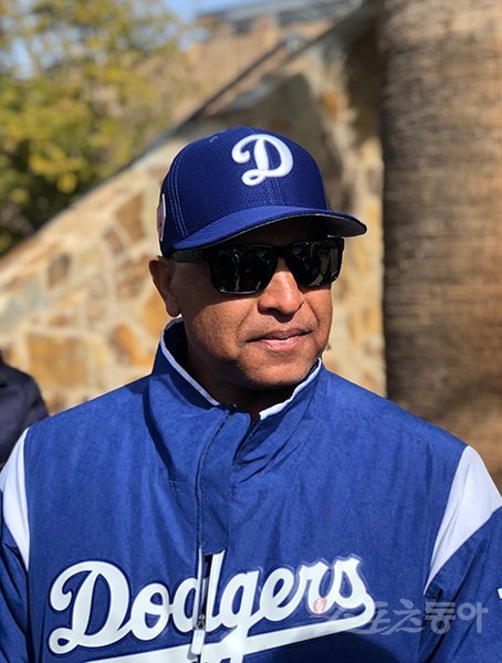 25일(한국시간) LA 에인절스전에 앞서 취재진과 인터뷰 중인 로버츠 감독. 글렌데일(미 애리조나주)|최익래 기자 ing17@donga.com