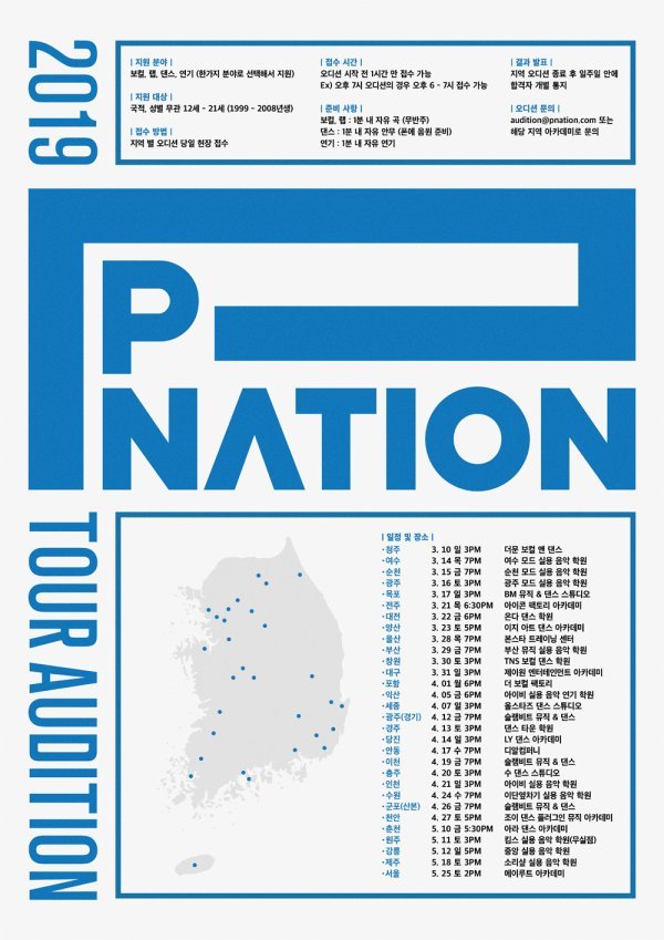 피네이션(P NATION)에서 대규모 투어 공개 오디션을 개최한다.