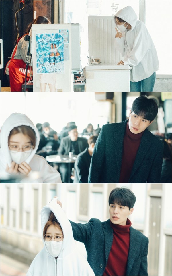 스틸 속에는 마스크와 후드티로 완전 무장한 채 닭발집을 찾은 오진심. 마치 첩보영화라도 찍는 듯 은밀하게 닭발을 주문을 하면서 자신을 알아보고 기웃거리는 권정록에게 들키지 않으려는 듯 시선을 회피하고 있다. 이내 자신의 후드를 덥석 잡은 권정록으로 인해 일시 정지 상태로 당황한 오진심의 표정이 포착돼 무슨 상황인지 궁금증을 끌어올린다.