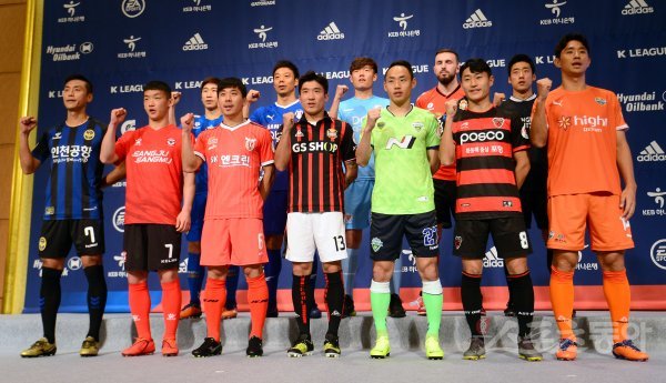 각 팀 대표 선수들이 포토타임을 갖고 있다.