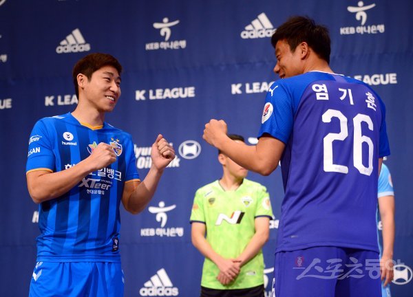 울산 이근호와 수원 염기훈이 포토타임을 갖고 있다.