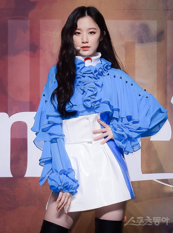 걸그룹 (여자)아이들의 슈화가 26일 서울 용산구 한남동 블루스퀘어에서 열린 새 미니앨범 ‘I made’ 발매 기념 쇼케이스에서 포토타임을 갖고 있다.