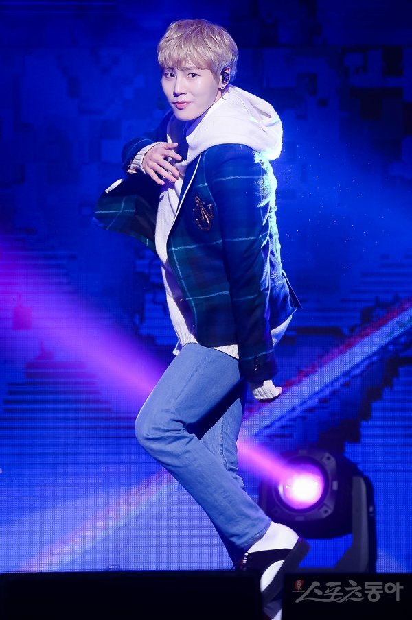 워너원 출신 가수 하성운이 27일 서울 광진구 예스24 라이브홀에서 열린 첫 번째 솔로 미니앨범 ‘My Moment’ 발매 기념 기자간담회에서 열정적인 무대를 펼치고 있다.