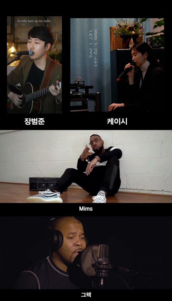 영상 속에는 장범준, 케이시, 버블시스터즈 출신 영지와 유투버 니다가 ‘신청곡 (Feat. SUGA of BTS)’을 커버한 영상이 차례대로 흘러나온다. 장범준은 원곡을 어쿠스틱 버전으로 편곡해 직접 기타 연주를 하며 부르고, 케이시와 영지&니다는 원곡을 자신들만의 스타일로 재해석해 부르는 모습이 담겨 있어 색다른 매력을 선사하고 있다.