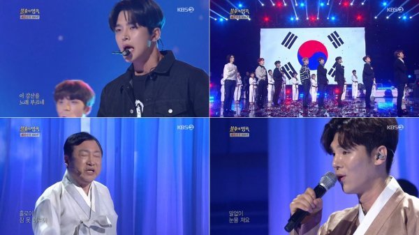 첫 번째 무대는 ‘불후의 명곡’에 첫 출연한 SF9이 꾸몄다. 정수라의 ‘아! 대한민국’을 선곡한 SF9은 K타이거즈와 컬래버 무대를 펼쳤다. 두 번째는 소리꾼 전설 윤충일과 신예 김준수의 ‘황성옛터’ ‘각설이 타령’ 무대. 판정단의 선택은 윤충일&김준수였다. 두 사람은 387표를 획득했다.