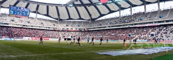 3일 서울 월드컵경기장에서 열린 ‘하나원큐 K리그1 2019’ FC 서울과 포항 스틸러스의 경기에서 미세머지에도 불구하고 많은 축구팬들이 경기를 지켜보고 있다.
