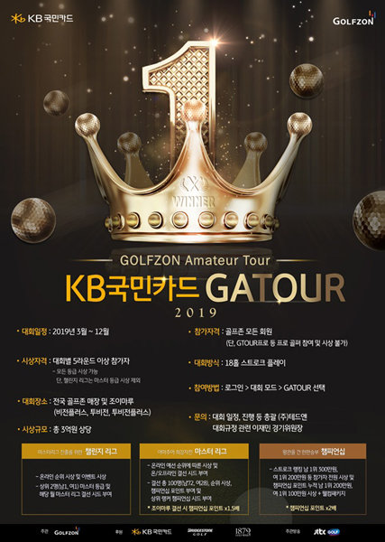 ㈜골프존(대표이사 박기원)이 총상금 3억 원 상당의 아마추어 골퍼 최강자전 ‘2019 KB국민카드 GATOUR’를 오픈한다고 밝혔다.