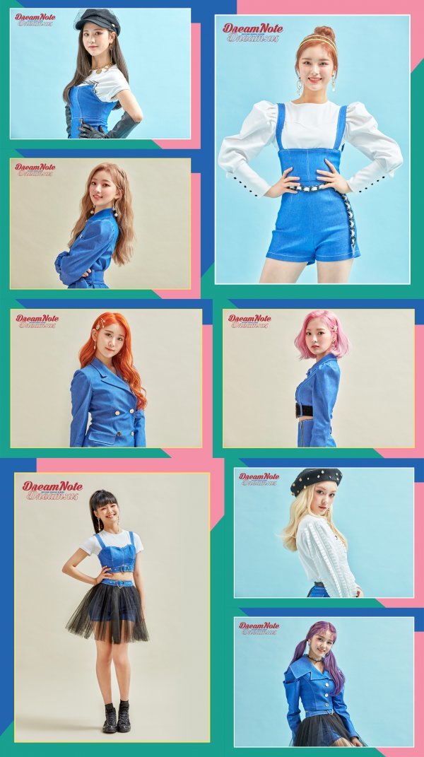 여성미를 물씬 풍기며 은은한 미소를 짓고 있는 유아이, 과감한 헤어 컬러 체인지로 화사한 매력을 더한 보니, 깊은 눈매와 세련된 분위기가 매력적인 라라, 하얀 피부의 인형 같은 비주얼이 인상적인 미소, 유니크한 스타일링을 완벽히 소화해낸 꽃미모 수민, 상큼한 업스타일 헤어와 당당한 포즈로 시선을 강탈하는 은조, 특유의 반달 눈웃음으로 표정으로 보는 이들의 마음을 무장해제 시키는 하빈, 보랏빛 양갈래 머리를 하고 러블리한 매력을 발산하는 한별까지 다채로운 매력을 뽐내는 드림노트 멤버들의 모습을 엿볼 수 있다.