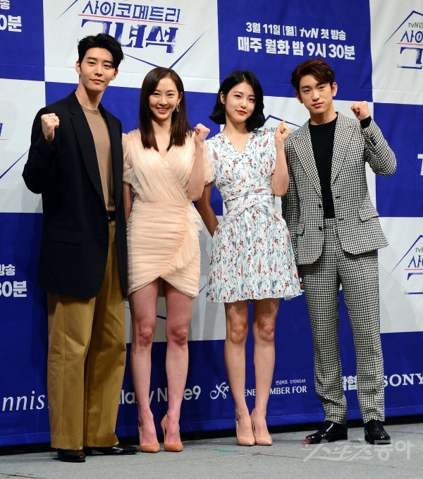 3일 서울 강남구 논현동 임피리얼팰리스 서울에서 열린 tvN 새 월화드라마 ‘사이코메트리 그녀석’ 제작발표회에서 김권, 김다솜,신예은, 박진영(GOT7)이 포토타임을 갖고 있다.