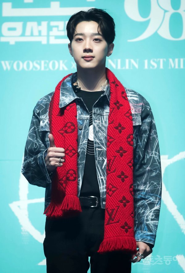 그룹 우석X관린의 라이관린이 11일 서울 광진구 예스24 라이브홀에서 열린 첫 번째 미니앨범 ‘9801’ 발매 기념 기자간담회에서 포토타임을 갖고 있다.