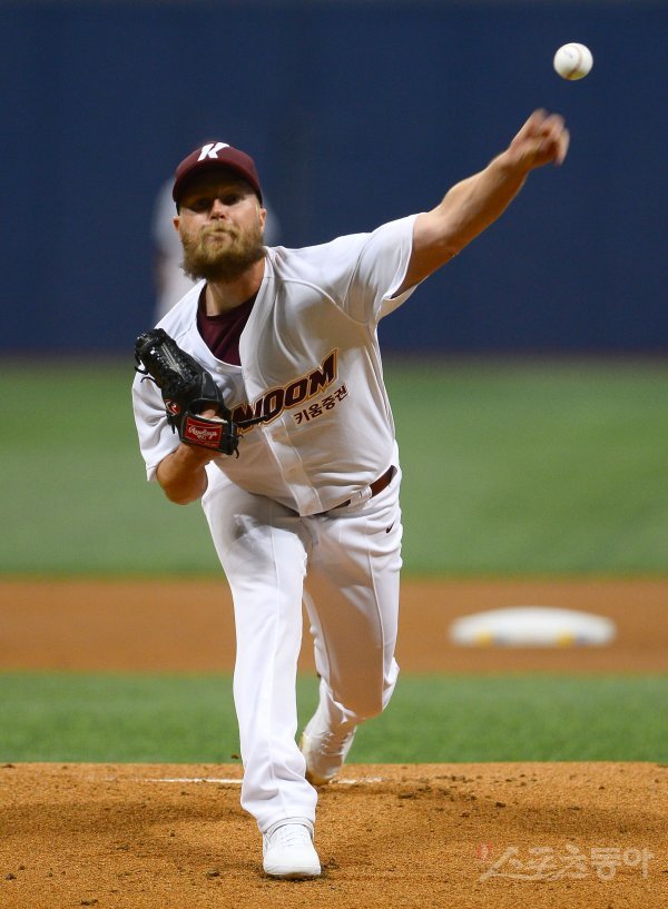 12일 서울 고척스카이돔에서 ‘2019 신한은행 MY CAR KBO리그 시범경기’ LG트윈스와 키움히어로즈의 경기가 열렸다. 키움 선발 요키시가 1회초 힘차게 공을 던지고 있다.