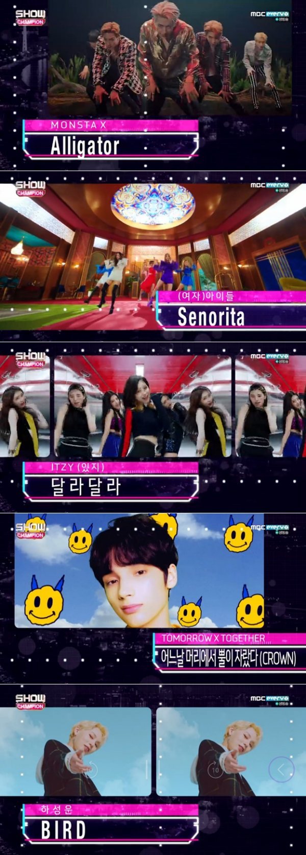13일 방송된 MBC에브리원 ‘쇼챔피언’ 307회에서는 3월 셋째주 챔피언송 후보가 공개됐다. 후보 5팀은 몬스타엑스, (여자)아이들, 있지, TXT 그리고 하성운이었다. 특히 TXT는 데뷔한 지 열흘도 되지 않아 1위 후보에 이름을 올려 눈길을 끌었다.