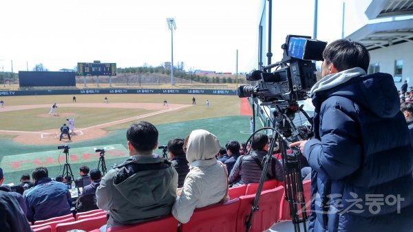 14일 경기도 이천시 LG챔피언스파크에서 ‘2019 신한은행 MY CAR KBO리그 시범경기’ 두산베어스와 LG트윈스의 경기가 열렸다. LG 구단에서 구단 유튜브 채널을 통해 경기를 생중계하고 있다.