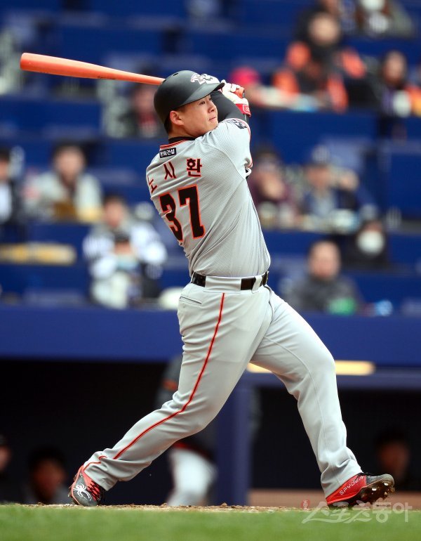 20일 창원NC파크에서 ‘2019 신한은행 MY CAR KBO리그’ 시범경기 한화이글스와 NC다이노스 경기가 열렸다. 7회초 1사 한화 노시환이 우월 솔로 홈런을 날리고 있다.