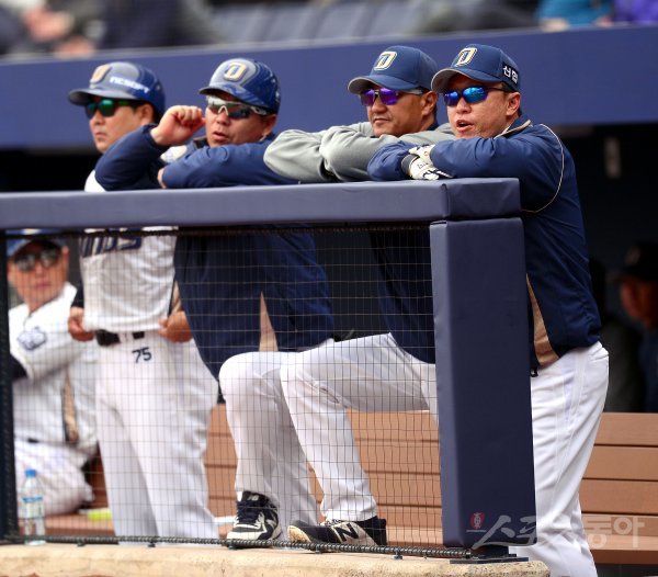 20일 창원NC파크에서 ‘2019 신한은행 MY CAR KBO리그’ 시범경기 한화이글스와 NC다이노스 경기가 열렸다. 이동욱 감독과 손민한 코치가 경기를 바라보고 있다.