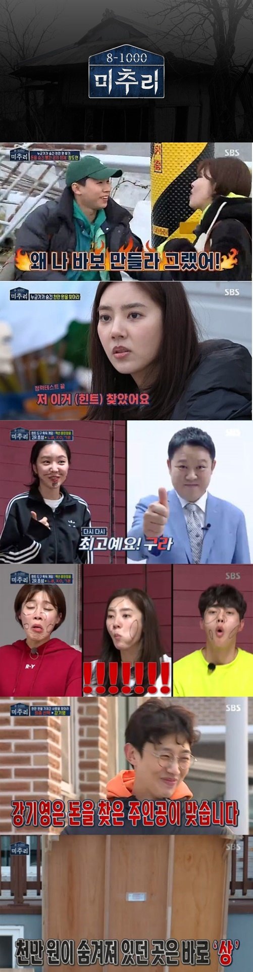 22일 방송된 ‘미추리2’에서는 최고난도의 마지막 추리 전쟁이 펼쳐져 눈길을 끌었다. 개그우먼 장도연이 1000만 원을 숨긴 ‘빨간 공’의 정체인 것이 드러난 가운데, 배우 강기영은 1000만 원의 행방을 찾아냈다.