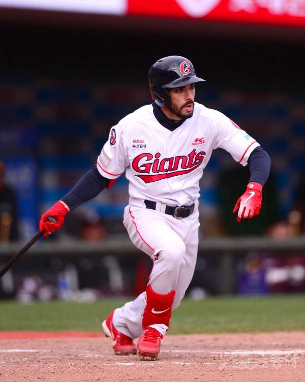 23일 부산 사직야구장에서 ‘2019 신한은행 MY CAR KBO리그’ 개막전 키움히어로즈와 롯데자이언츠 경기가 열렸다. 6회말 무사 롯데 아수아헤가 우전 안타를 치고 있다. 부산 | 김종원 기자 won@donga.com