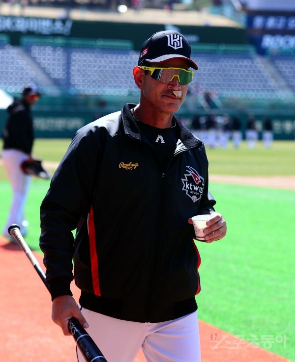 24일 인천 SK행복드림구장에서 ‘2019 신한은행 MY CAR KBO리그’ SK 와이번스와 kt 위즈의 경기가 열린다. 전날 입술 주위에 볼을 맞아 부상을 당한 kt 게레로 코치가 치료 후 경기장에 나타나고 있다.