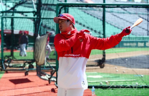 24일 인천 SK행복드림구장에서 ‘2019 신한은행 MY CAR KBO리그’ SK 와이번스와 kt 위즈의 경기가 열린다. 경기 전 SK 고종욱이 타격 훈련을 펼치고 있다.