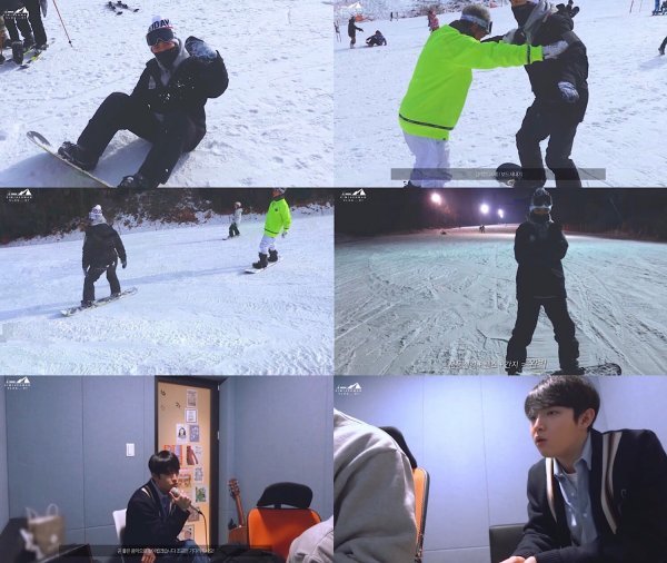 이날 공개된 영상에는 기차를 타고 강원도 둔내로 향하는 김재환의 여행기로 시작된다. 이어 스키장을 찾은 그는 처음으로 보드에 도전했으며, 넘어지고 일어나는 것을 반복한 끝에 능숙하게 활강하는 모습을 자랑해 눈길을 끌었다.