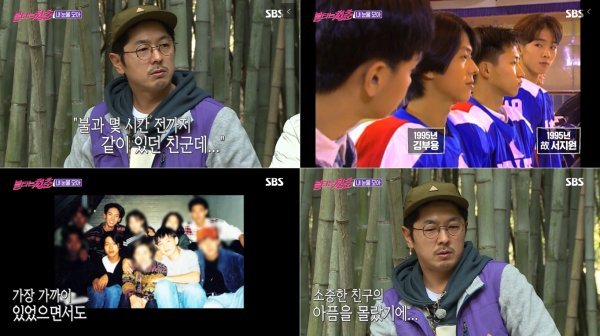 소중한 사람들을 떠나보내면서 멀어진 김부용과 최재훈. 김부용은 “특히 서지원은 그렇게 갈 줄 전혀 몰랐다. 미국에서 와서 활발하고 붙임성도 좋은 친구였다. (사망) 전날 강태석과 셋이 술 먹고 헤어졌다. 몇 시간 전까지 나와 같이 놀던 친구가 그렇게 간 것”이라며 “정말 미안했다”고 털어놨다. 그는 “서지원을 보낸 뒤 무서웠다. 나도 그에게 갈 것 같았다. 심장이 쿵쾅거리더라. 병원에도 가봤는데 ‘건강하다’고 했다. 그땐 몰랐다. 공황장애를 겪는 줄”이라고 말했다.