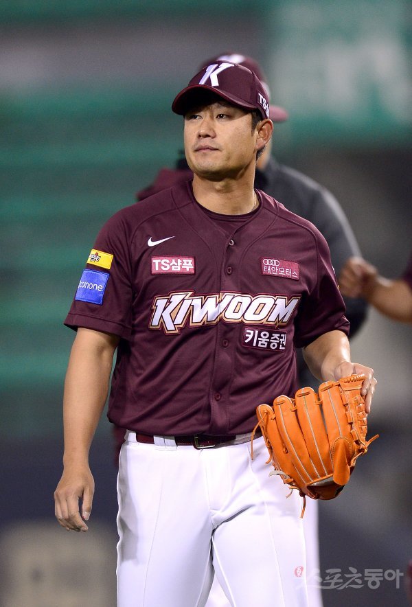 9회말 2사 1,2루 상황에서 키움 김상수가 손가락 부상으로 교체되고 있다.