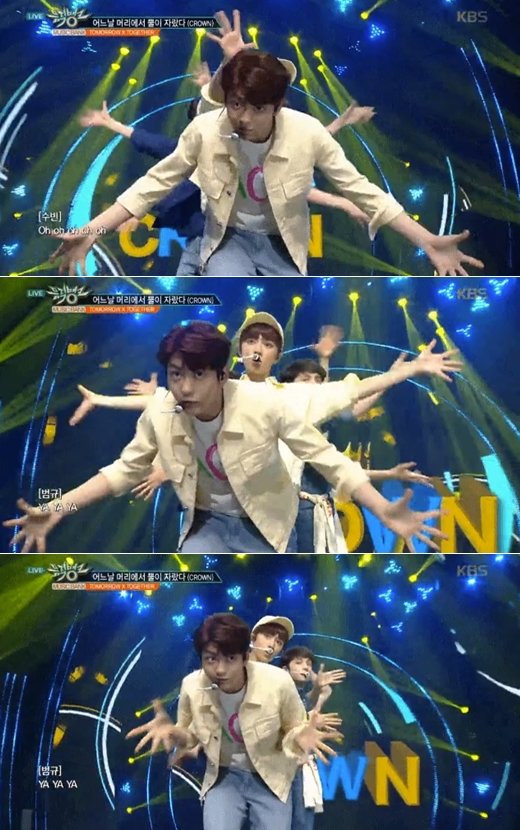 신인그룹 투모로우바이투게더(TXT)가 ‘뮤직뱅크’ 방송 사고에도 의연한 대처로 눈길을 끌었다.