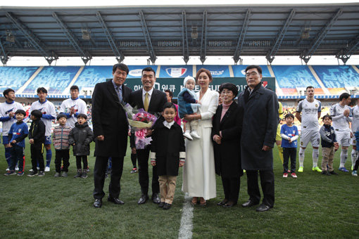 수원 조원희(왼쪽 두 번째) 은퇴식. 사진제공|한국프로축구연맹