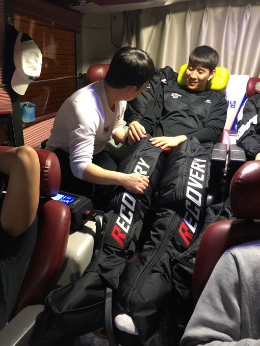 이는 선수들이 다리에 착용한 뒤 작동을 시키면 공기압을 통해 신체의 혈액순환을 원활하게 촉진시켜 뭉친 근육을 풀어주는 장비다. 압박 냉 치료기의 경우 착용 부위를 냉각 시켜 통증, 근육 경직, 조직 손상, 부종을 줄이는 효과를 낸다. 단순한 얼음찜질보다 효과가 훨씬 좋다. 이 장비들은 휴대용으로 버스 이동 간에도 사용이 가능하다. 양홍석(22)은 PO 기간 동안 호텔방과 버스에서 생활 루틴으로 이용할 정도다.