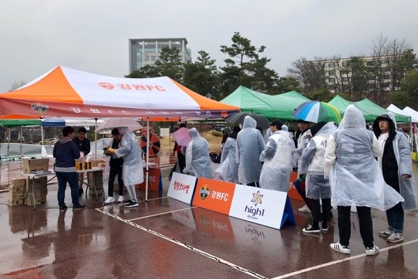강원FC는 지난달 30일 오후 2시 강원대학교 신입생 체육대회에 참가했다. 대운동장에서 신입생 300여 명을 만나 홈경기 홍보 활동에 나섰다.