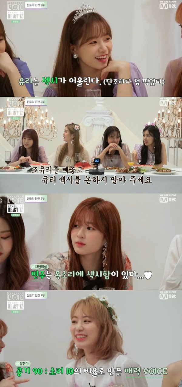 이날 아이즈원은 막간 영상을 통해 여신 복장을 한 채 만찬을 즐겼다. 이런 가운데 이번 컴백에 대한 소감 등을 전했다.