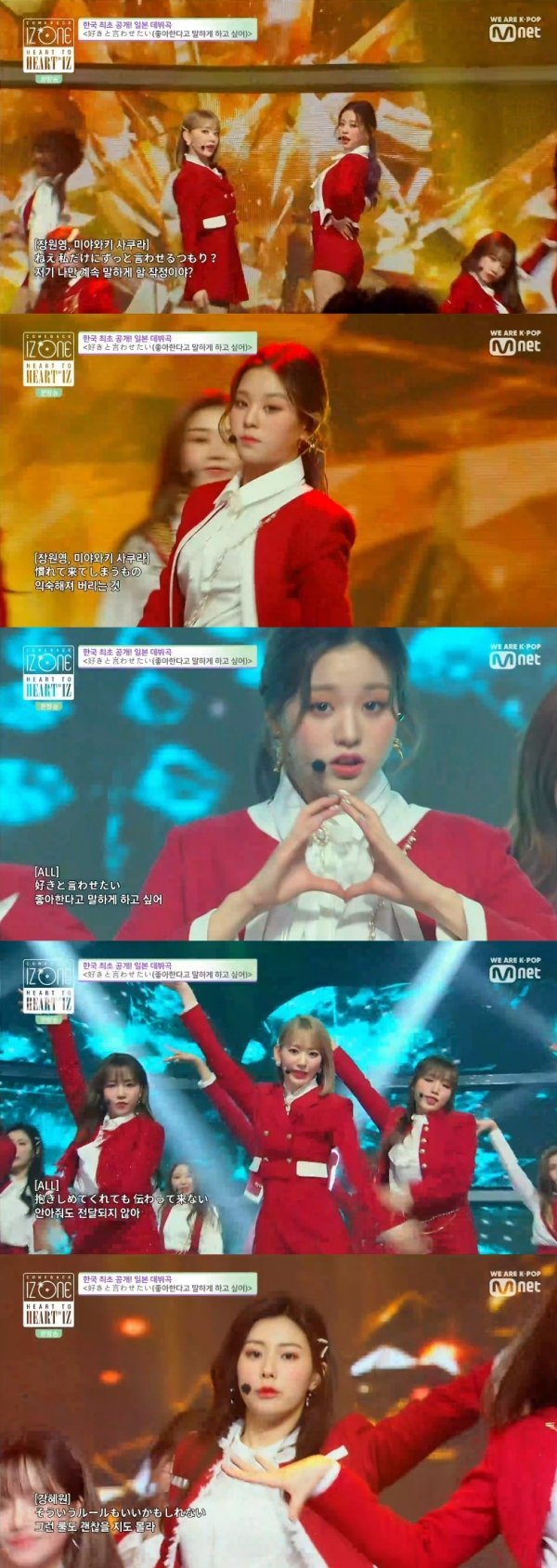 1일 오후 7시 케이블 채널 Mnet에서는 아이즈원(장원영, 미야와키 사쿠라, 조유리, 최예나, 안유진, 야부키 나코, 권은비, 강혜원, 혼다 히토미, 김채원, 김민주, 이채연)의 컴백쇼 ‘HEART TO <HEART*IZ>’가 전파를 탔다. 이에 앞서 아이즈원은 새 미니 앨범 ‘HEART*IZ’를 발매하고 타이틀곡 ‘비올레타’를 공개했다.